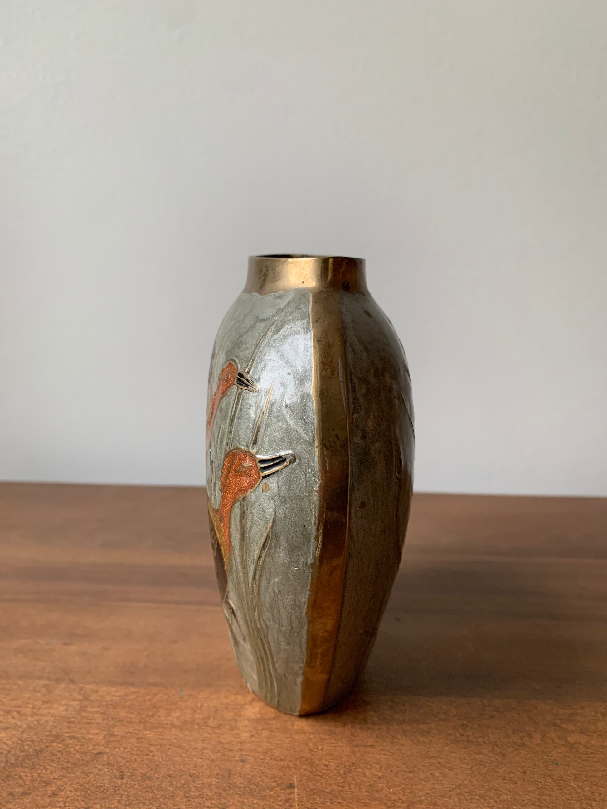 Solid Brass Vase with Pheasants Made in India